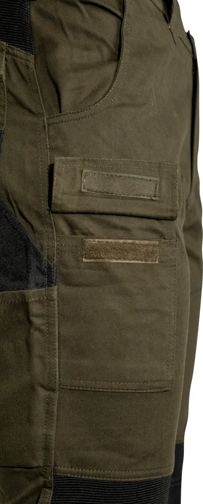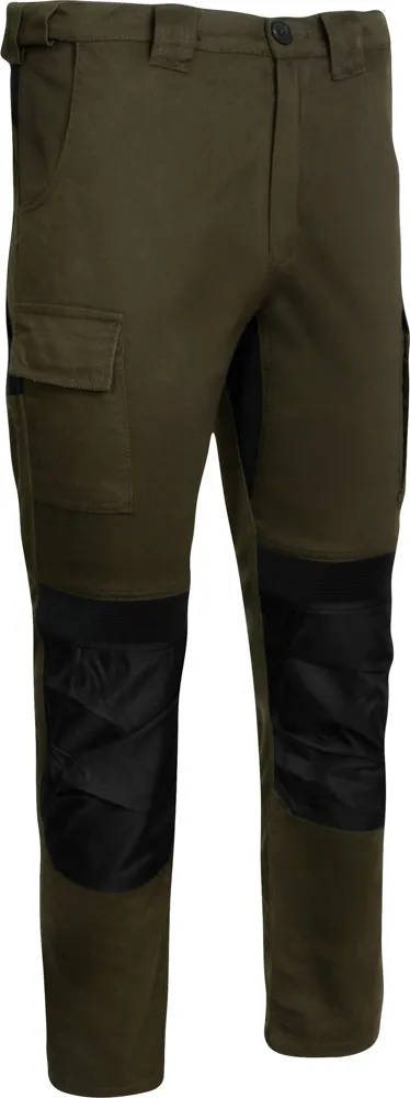 Zahvaljujući rastezljivim (stretch) zonama na ključnim dijelovima, omogućuju slobodu kretanja i veću fleksibilnost pri savijanju, klečanju ili hodanju po zahtjevnom terenu. Funkcionalan dizajn uključuje više praktičnih džepova – dva stražnja džepa, uslužne džepove te poseban džep za nož, što omogućuje jednostavnu organizaciju opreme.