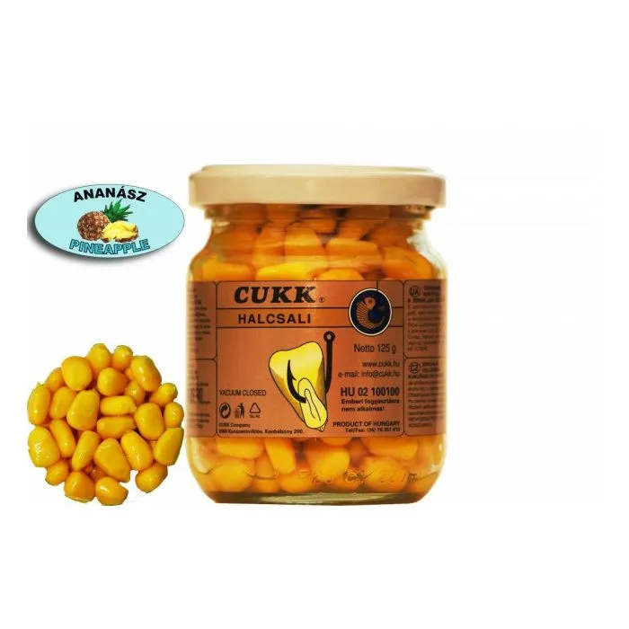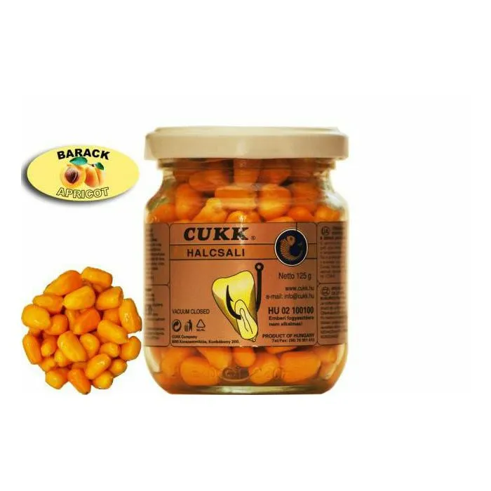 CUKK konzervirani kukuruz za ribolov dolazi u različitim aromama i predstavlja omiljenu poslasticu gotovo svih vrsta riba, osim grabežljivica. Svako zrno je cijelo, pravilne strukture, optimalne tvrdoće i idealno za postavljanje na udicu.