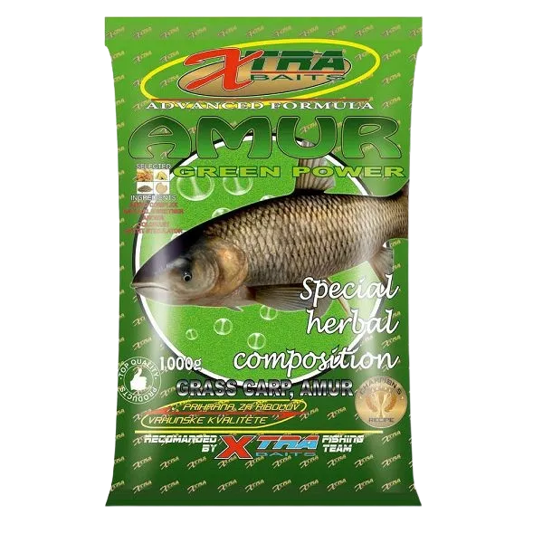 Xtra Baits Amur je posebno formulirana prihrana namijenjena isključivo za lov amura. Ugodne je arome anisa, svijetlozelene boje te dodatno obogaćena zelenim 6 mm peletima biljnog sastava koji dodatno pojačavaju njenu atraktivnost.